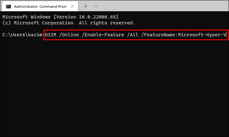 DISM /Online /Enable-Feature /All /FeatureName:Microsoft-Hyper-V