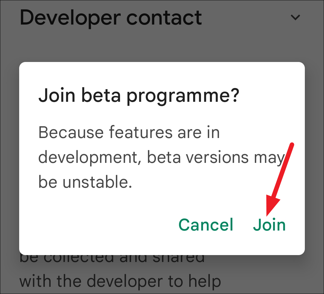 A confirmation prompt will appear informing you that beta versions can be unstable. Tap ‘Join’ if you want to proceed.