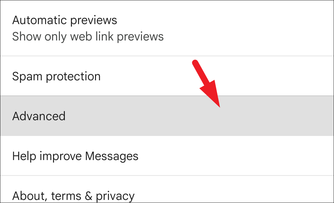 Next, from the ‘Settings’ screen, locate and tap on the ‘Advanced’ option to proceed.