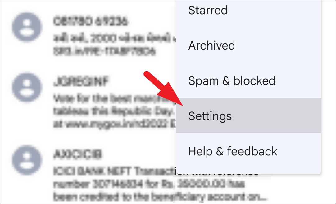 After that, locate and tap on the ‘Settings’ option from the list present on the overflow menu to continue.