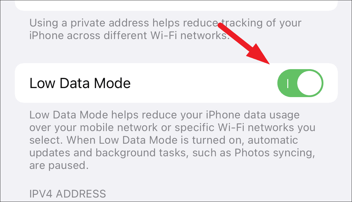 In that case, it makes sense to turn on the ‘Low Data Mode’ for that specific Wi-Fi connection to avoid any unnecessary usage of the cellular data which can eat up your precious quota.