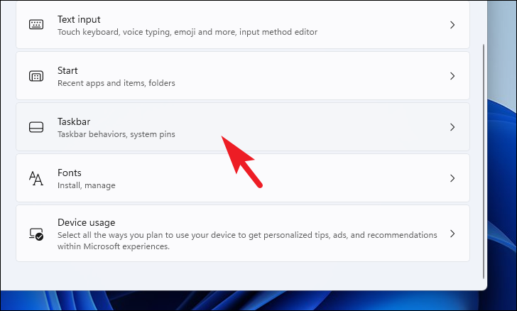Step 3: Navigate to the right side of the window and click on 'Taskbar' to view and modify taskbar settings.
