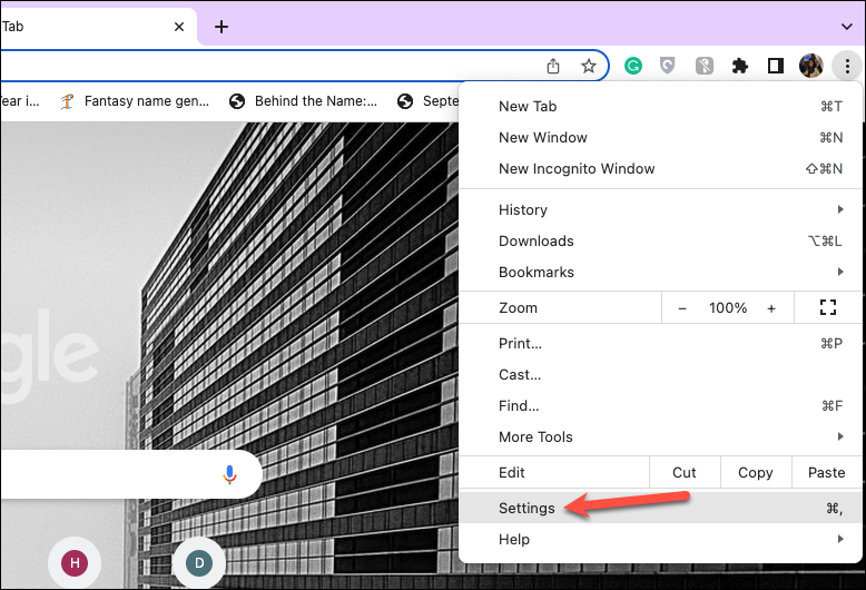 Step 2: In the drop-down menu that appears, select 'Settings'.