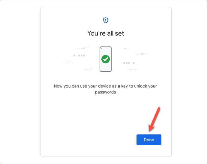 Step 11: Google will take a few moments to change the encryption settings. Once completed, you can use your device as a key to unlock your passwords. Click 'Done' to return to the settings page.