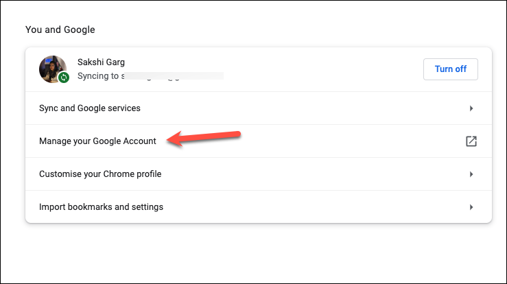 Step 3: In the Settings page, click on the option labeled 'Manage your Google Account'.