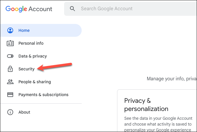 Step 4: Your Google Account settings will open in a new tab. From the navigation menu on the left side, select 'Security'.