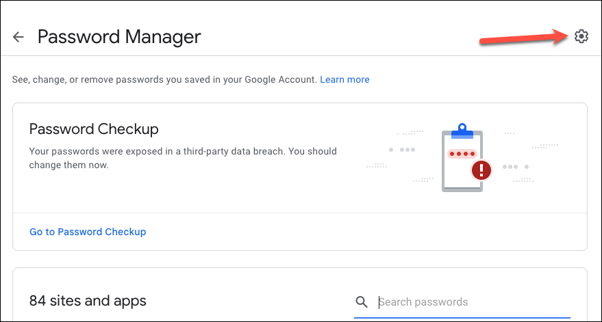 Step 6: On the Password Manager page, click the 'Settings' icon, typically represented by a gear icon.