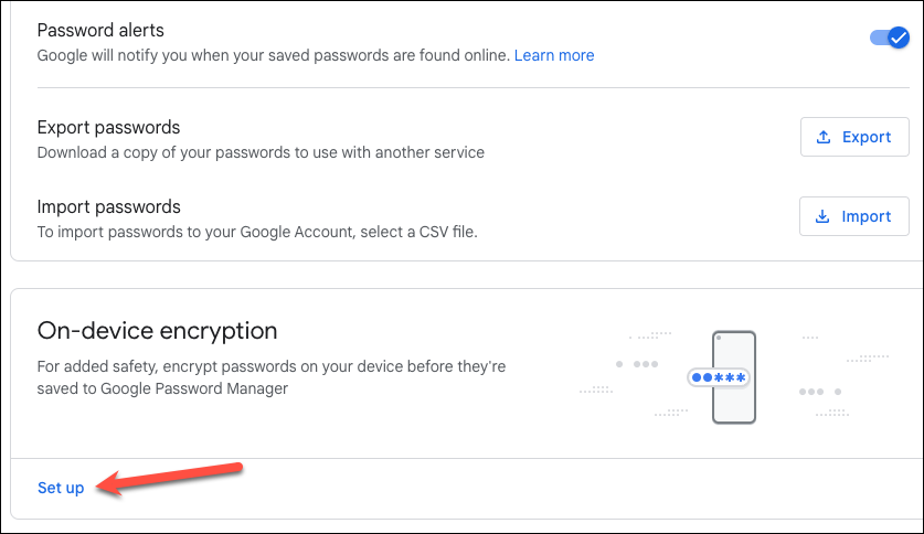 Note: Once you enable on-device encryption for your passwords, the feature can't be turned off.