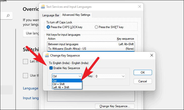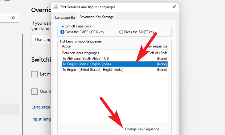 Switching input methods, click onInput language hot keys. A new window will open.