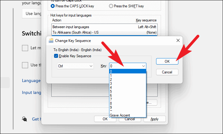 - Select the input language you want to create a hotkey for and click on