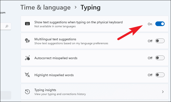 Note: Typing insights are available only when both text suggestions and autocorrect features are enabled.
