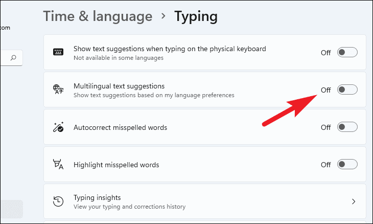 - To disable multilingual text suggestions, toggle the switch next to