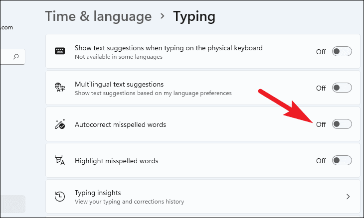 Autocorrect misspelled wordsto Off.