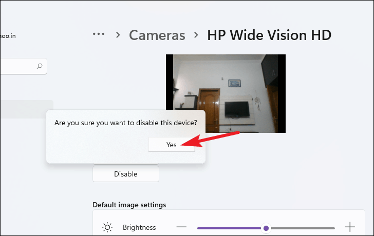 - When prompted for confirmation, click Yes. The camera device will now be disabled and unavailable for use.