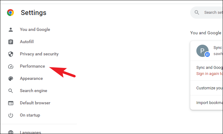 Step 2: In the Settings menu, look at the left sidebar and click on Performance. This section contains settings related to optimizing Chrome's performance.