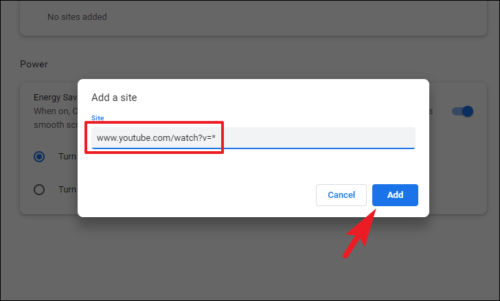 Step 6: To use wildcards for patterns in URLs, you can include an asterisk (*). For example, entering www.youtube.com/watch?v=* ensures that all YouTube video pages remain active.