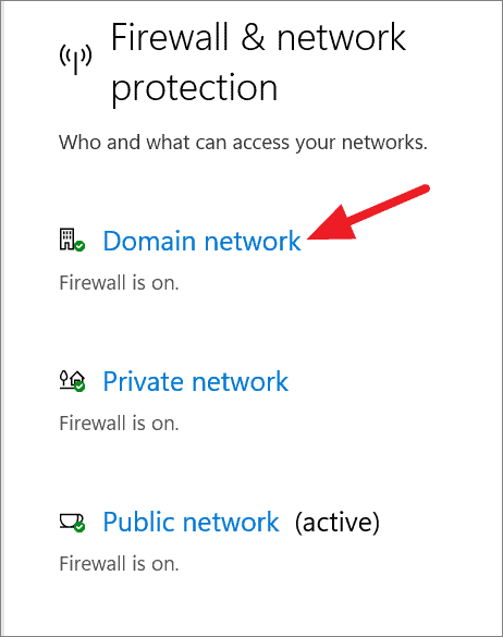 - Choose the network profile you want to modify: Domain network, Private network, or Public network. For most home users, select Private network.