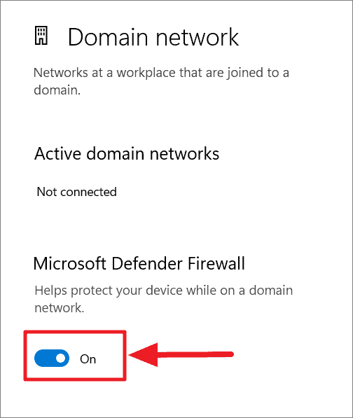 - Under the Microsoft Defender Firewall section, toggle the switch to Off to disable the firewall. Confirm any prompts that appear.