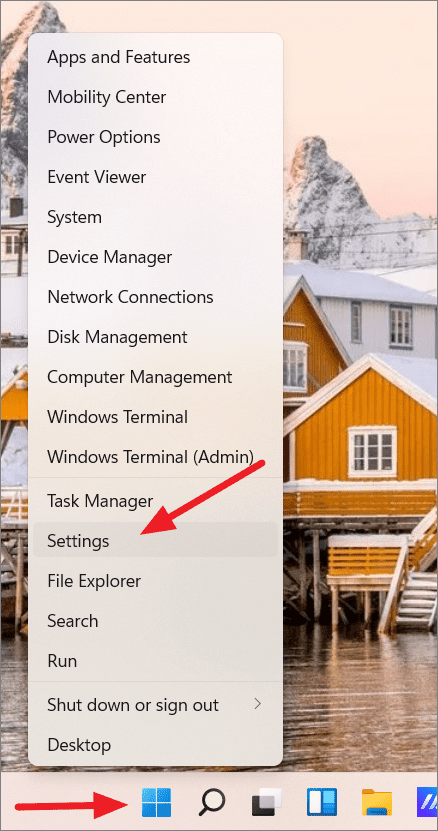 Windows+Ito open the Settings app. Alternatively, right-click the Start button and select Settings.