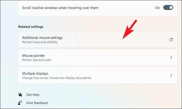 Step 4: Scroll down and click on Additional mouse settings under the Related settings section. This will open the Mouse Properties window.