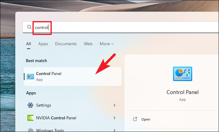 Step 1: Open the Start menu and type Control Panel into the search bar. Click on the Control Panel app from the search results to open it.