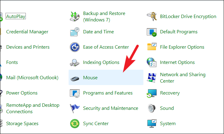 Step 2: In the Control Panel, set the View by option to Large icons or Small icons if it's not already selected. Then, locate and click on the Mouse option to open the Mouse Properties window.