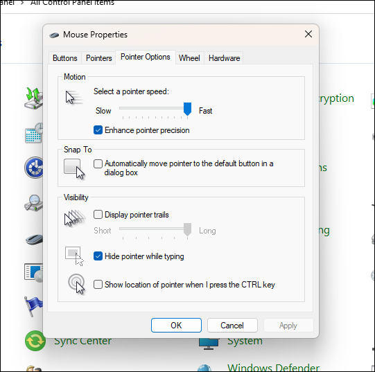 If you prefer using the Control Panel or are unable to access the additional mouse settings through the Settings app, you can also enable or disable mouse pointer trails via the Control Panel.