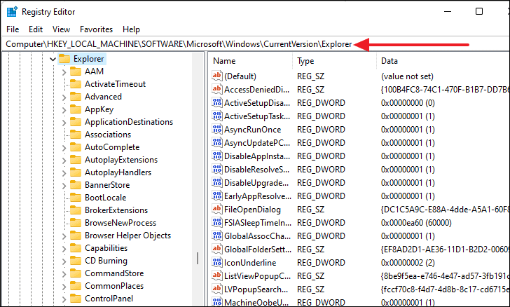 HKEY_LOCAL_MACHINE\SOFTWARE\Microsoft\Windows\CurrentVersion\Explorer