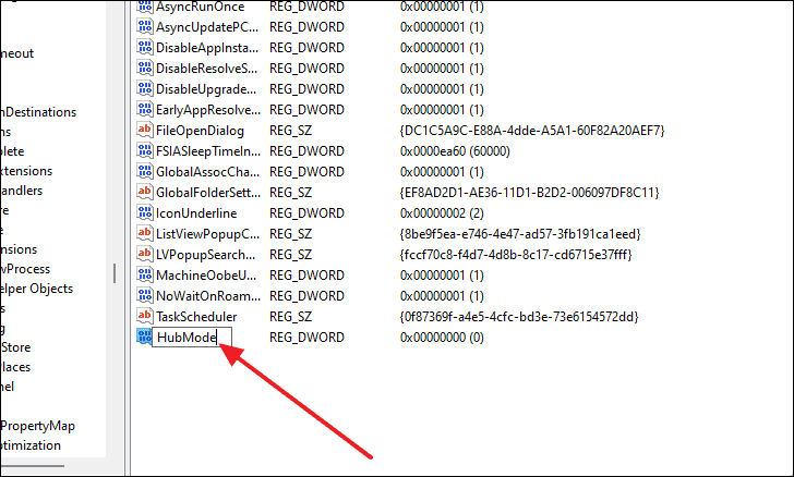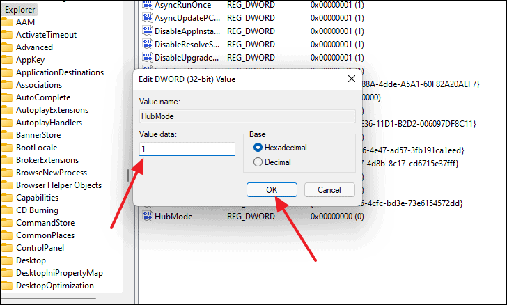 - Double-click 'HubMode' and set the 'Value data' to 1.