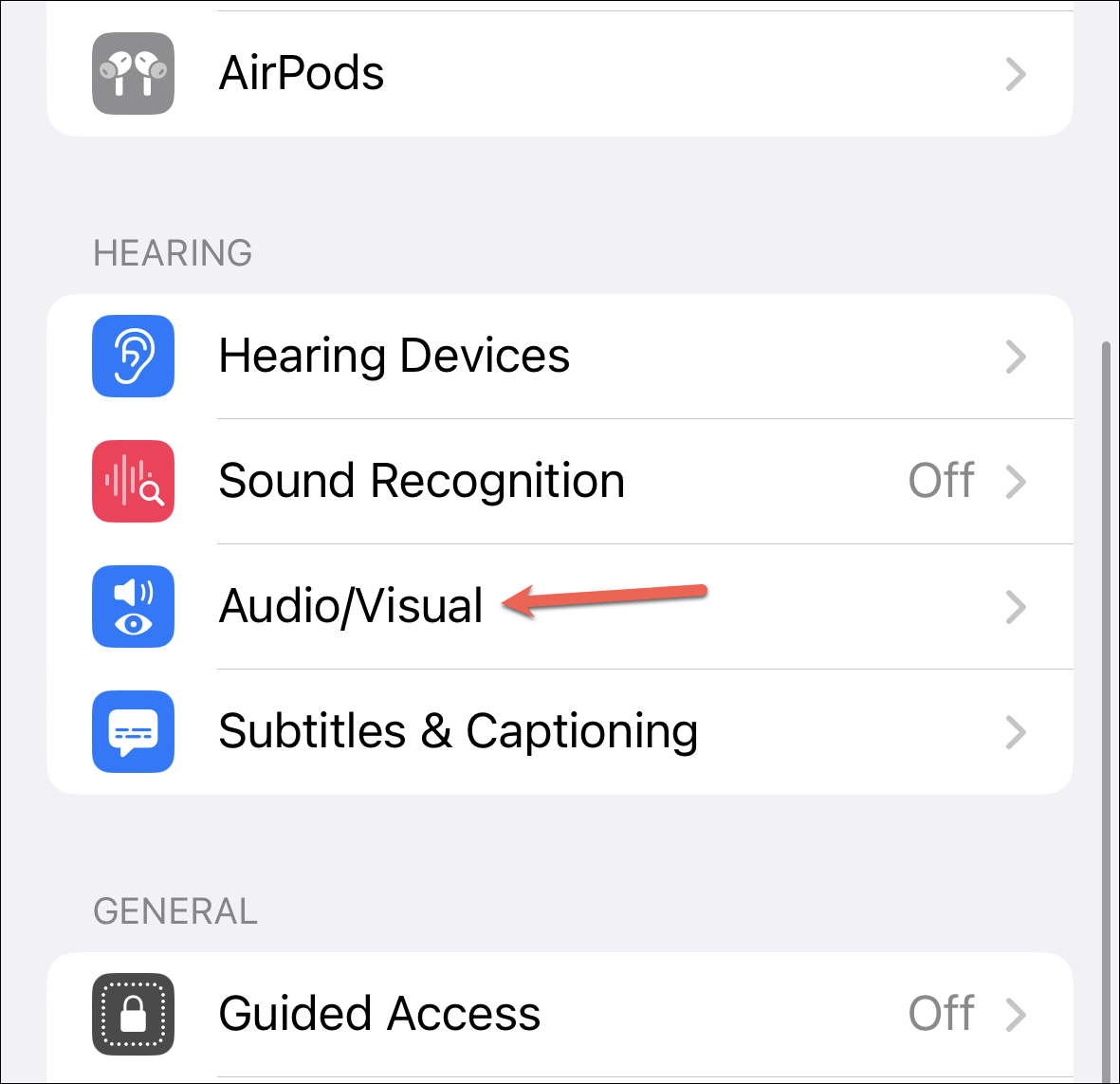 Then, tap the option for ‘Audio/ Visual’.