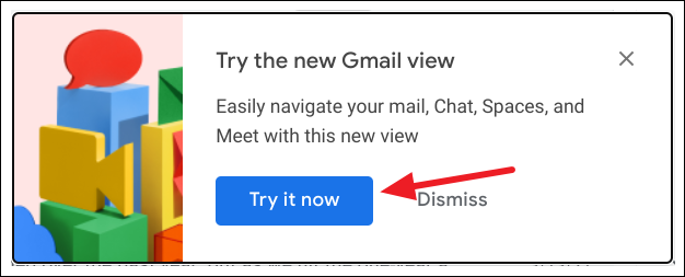 Go to gmail.com from your browser and sign in with your account. If the new view is available for your account, you’ll get a notification prompting you to try out the new view in the bottom-right corner of the screen. Click the ‘Try it now’ option. Your Gmail will reload automatically. Chances are that even after reloading, you still might see the old view. Just hit the reload button again and this time the changes should take effect.
