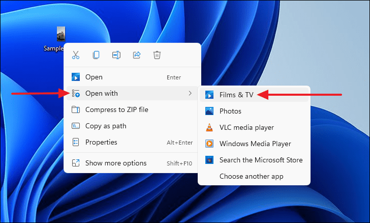 - Right-click on the video file, select Open with, and choose Films & TV.