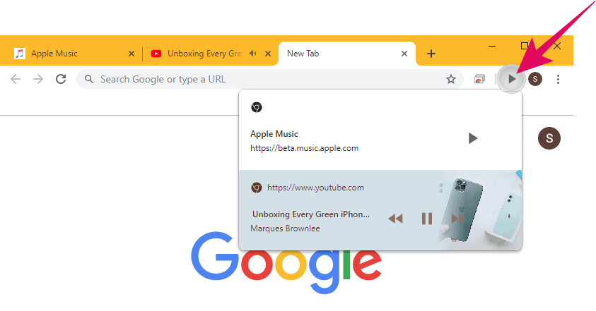 After relaunching Chrome, you’ll see the media control button (►) near your profile picture icon at the top right corner of Chrome.