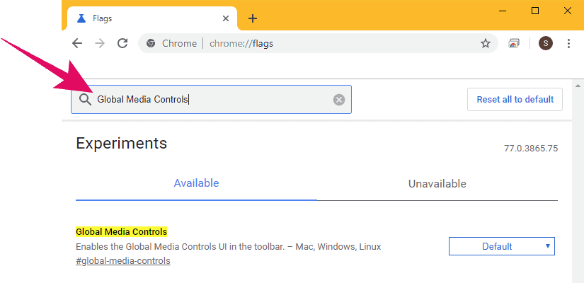 In the search box on Chrome’s Experiments page, type “Global Media Controls” to quickly find the new feature among all experimental features available in Chrome.