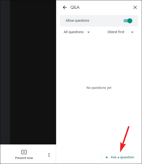 Also, only users who are attending the meeting from the Google Meet web app on their computers can use the Q&A feature. That goes for both moderators and participants. Participants might not need a Workspace account, but if they are joining the meeting from the mobile app, they can’t see nor ask questions using Q&A.