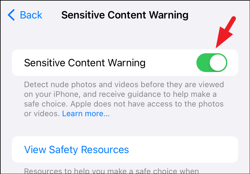 Finally, tap the 'Sensitive Content Warning' toggle to enable it.