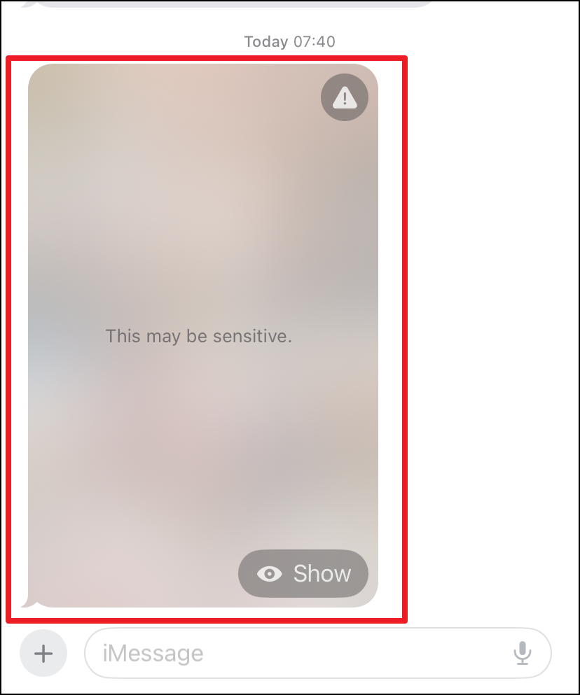 Below is an example of how a message that contains sensitive/explicit pictures will appear in the messaging app. Notice that the image is blurred.