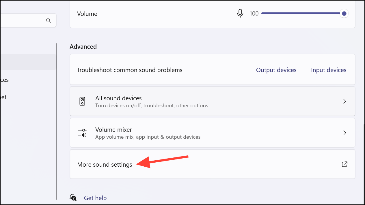 Step 4: Scroll down within the Sound settings and click on 'More sound settings' to open additional options.
