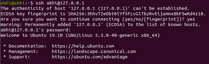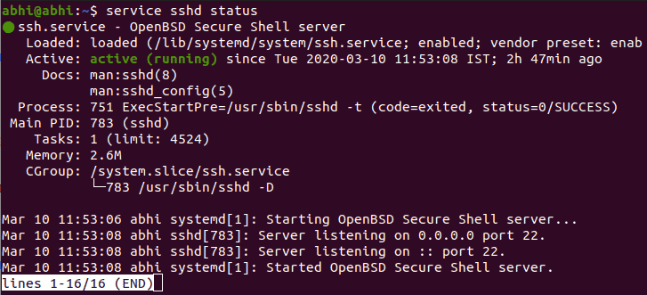 sudo service sshd startStep 3: With SSH enabled and running, your system is ready to accept remote connections. To connect to your Ubuntu machine from another computer, use the SSH client by running: