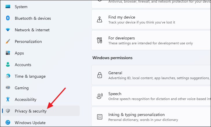 Step 2: In the Settings window, select Privacy & security from the options on the left sidebar.
