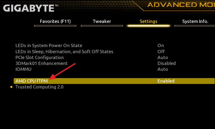 If you have an AMD processor, follow these steps to enable TPM 2.0: