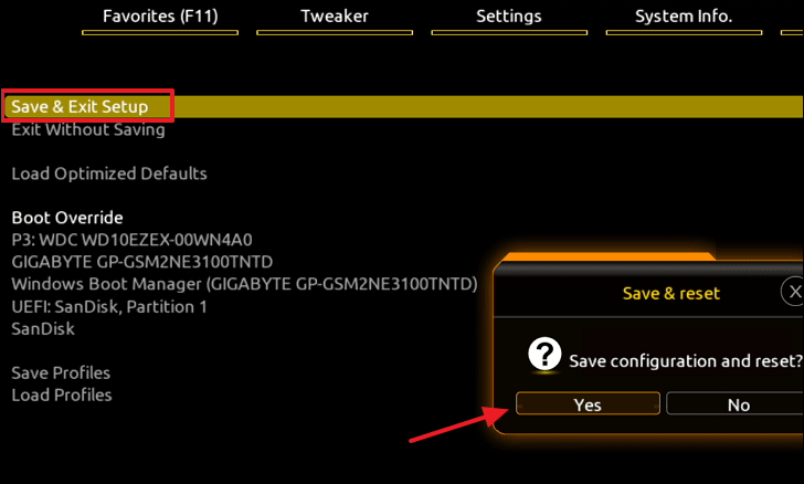 Step 6: Save your changes by selecting Save & Exit and confirm when prompted. Your computer will restart.