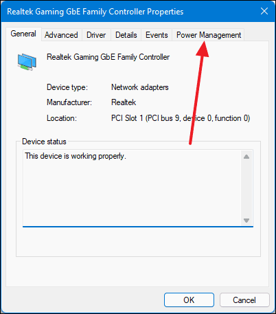 - Switch to the Power Management tab.
