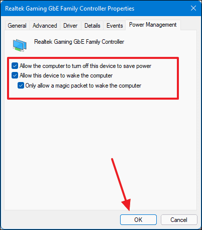With these settings configured, Wake on LAN is now enabled on your Windows 11 PC.