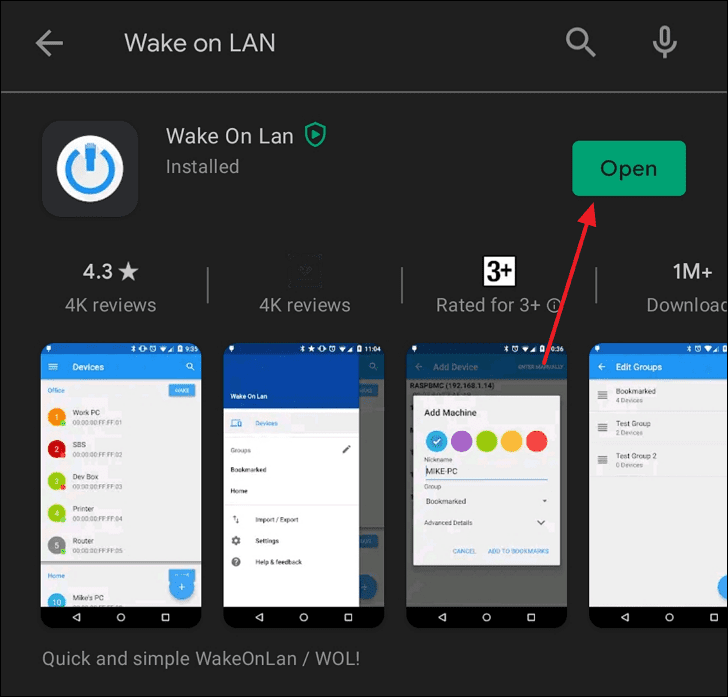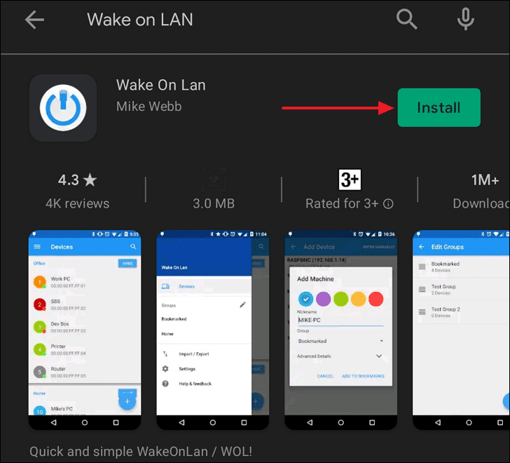 - Search for Wake on LAN. Locate the app developed by Mike Webb and tap Install.