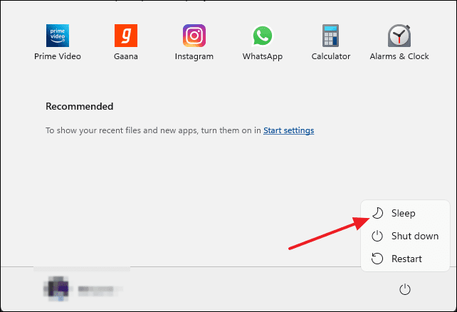 - On your PC, click the Start button, select the Power icon, and choose Sleep to put your computer to sleep.