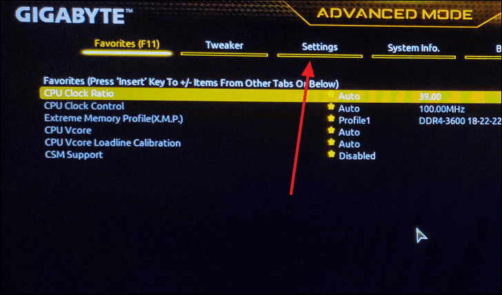 - Once inside the BIOS, switch to Advanced Mode by pressing