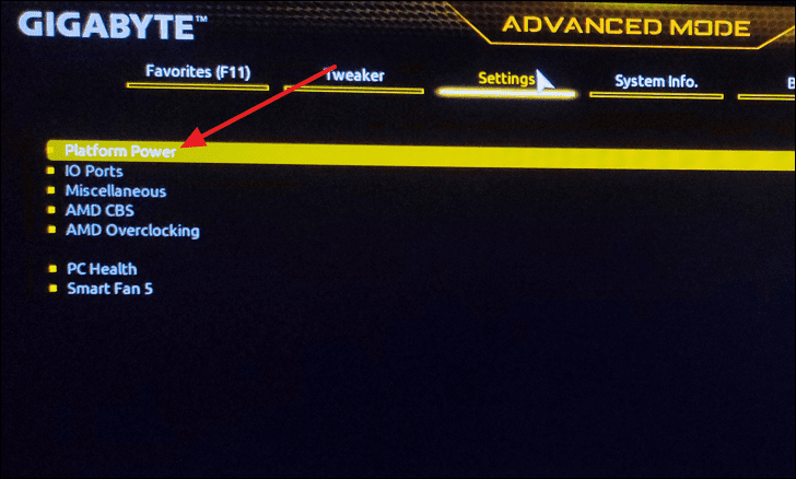 - Select Platform Power.