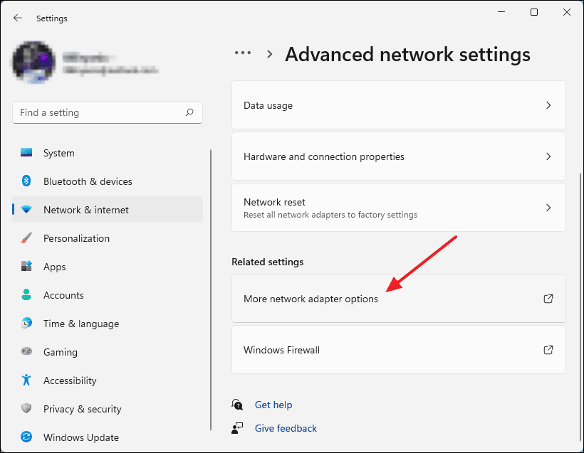 - Scroll down and click on More network adapter options.