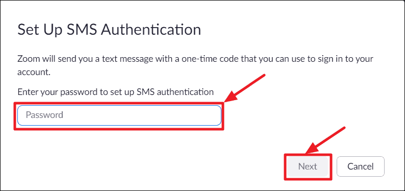 Zoom 2FA also supports an SMS-based setup, where you get an OTP (One Time Password) on your registered mobile number.